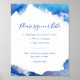 Maßgeschneidertes, bedrucktes Gästebuchzeichen mit abstraktem blauen Wasserfarbenrand, um sich mit unserer Sapphire Tide Kollektion abzustimmen. Personalisieren Sie es mit Ihrem eigenen Text. Verwenden Sie die Designtools, um die Schriftart und Farben zu bearbeiten oder laden Sie Ihre eigenen Fotos, um ein einzigartiges Hochzeitsempfangszeichen zu erstellen.