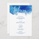 Maßgeschneiderte Hochzeitsmenükarten mit abstraktem blauen Wasserfarbenrand, um sich mit unserer Sapphire Tide Kollektion abzustimmen. Passen Sie den Text mit Ihren Hochzeitsmenüs an. Verwenden Sie die Entwurfswerkzeuge, um die Schriftart und Farben zu bearbeiten oder um Text zu verschieben, um die Menüauswahl zu wählen. Dieses ozeanisch inspirierte Design ist perfekt für eine Hochzeit in Urlaubsort am Strand!