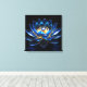 A meticulously crafted blue glass lotus flower with gold detailing, featuring a central sapphire gemstone.