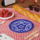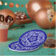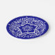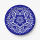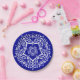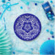 Diese weiße Mandala sitzt auf einem hellen, tiefblauen Hintergrund. Die Farben sind intelligent und introspektiv. Teil der Sammlung Jarn Mandala.