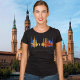 Das Material ist eigentlich gute Qualität, der Stoff ist nur etwas verzogen so dass der Drück leicht schief aussieht. Der Druck ist gute Qualität, habe das T-Shirt schon einige male gewaschen.