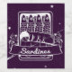Eine Vektorgrafik einer Sardinenzange auf einem lila Hintergrund. Diese Fischdose hat das Aussehen eines Vintagen, bedrängten Posters mit Falten erhöht. Ein Design für alle, die Lieben gescannt Schrägstrich Fischkonserven.