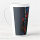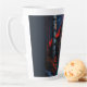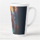 Sasquatch Moonlit Jagd Latte Tasse. Ein majestätischer Sasquatch unter einem leuchtenden orangefarbenen Mond. Set inmitten eines bezaubernden Waldes, mit schimmernden, blauen Wasserfällen im Vordergrund, verbindet dieses Design unheimliches Geheimnis mit natürlicher Schönheit. Der durchdringende Blick und das fließende Fell der Kreatur werden durch das Licht des Mondes erhellt, was das Wesen der ungezähmten Wildnis einnimmt.