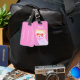 Niedlicher personalisierter Gepäckanhänger mit digitaler Illustration eines lila Frettchens, der mit Launen lächelt. Mit seiner niedlichen kleinen Nase und den leuchtenden Augen wird dieses bezaubernde Wesen bestimmt das Herz stehlen. Die Illustration zeichnet sich durch sanfte, pastellfarbene Regenbogenfarben und einen zarten Linienstil aus, der eine traumhafte und ätherische Atmosphäre schafft. Ideal für alle, die Tiere und Kunstwerke Lieben, ist dieses Stück sicher, ein Lächeln in das Gesicht Ihres kleinen Mädchens auf Reisen zu bringen.