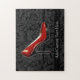 Mit diesem schicken roten Damenschuh-Design, personalisiert mit Ihrem Namen oder einem anderen beliebten Schuhgeschäft oder Sprichwort, zeigen Sie Ihr Stilgefühl. Einzigartig, stilvoll und hochmodisch, roter Stiletto Pump Pump, Lackleder in kräftigem, kräftigem Rot, mit seitlicher und unterer Vorführung. Schwarz-dunkelbrauner Damast-Hintergrund aus Holzkohle. Alle Designs Copyright © 2012 www.CuteComfy.com Dieses Design ist als komplette Sammlung erhältlich!