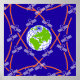Eine Grafik von vielen Satelliten, die um die Erde kreisen. Dieses Design sieht wirklich effektiv aus auf diesem Poster