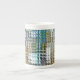 Ein schimmerndes Farbdisplay in Weiß, Blau, Schwarz, Bronze, Grün und Silber in einem lebendigen, gesteppten Muster, Satin.