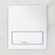 Platzkarte mit einem klaren blau-weißen Design.