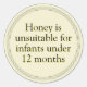 "Honig ist ungeeignet für Säuglinge unter 12 Monaten" - nur eine andere Art des Sprichworts füttre Kindern unter einem Jahr Honig nicht. Das antike, cremefarbene Honigwaschetikett kann für jeden Verwendungszweck auf der oberen Kappe oder der Seite der Glaswaschgläser, Plastikpresseflaschen und anderen Honigbehältern individuell gestaltet werden. Finden Sie in unserem Shop die Etiketten für Körnung und Honignahrung. © dottern