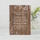 Ce faire-part de mariage est agrémenté d'un joli tapis de saule posé sur un arrière - plan en bois rustique dans les tons marron, blanc et noir.