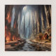 Große Steinsäulen stützen eine Erddecke über einem Untergrund von Menschen, die in einer riesigen Höhle leben, mit einem Fluss, Spazierwegen und Energiequelle.