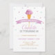 Une douce fête ! Cette invitation à thème crème glacée imprimée avant et arrière est parfaite pour un anniversaire ! Comprend des arroses roses, violettes et turquoises.