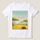 The image shows an illustration of a savanna, a tropical biome characterized by grassy steppes with scattered trees. The savanna is a transitional zone between a rainforest and a desert. At the bottom of the painting is a hippopotamus.