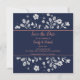 Stilvolle und trendige, schlichte weiße, blumengeschmückte Save the Date-Karte.