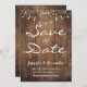 Hochzeit speichern Sie die Dattelkarte mit Holzhintergrund und Märchenleuchten. Geben Sie Ihren eigenen Text über Beispieltext ein.