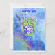 Un arrière - plan marbré bleu, vert et rouge avec un gâteau d'anniversaire et 1 bougie au centre de l'invitation et les mots amusants qui disent enregistrer la date en lettres bleues. retour de la carte a le 1er anniversaire du bébé avec la date, l'heure et la place dans les mêmes lettres bleues. correspondance affranchissement, cartes de note et aimant.