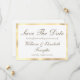 C'est une année spéciale, un 50e anniversaire de mariage et une célébration avec des amis et de la famille est une nécessité absolue. Cependant, si vous savez que vous voulez célébrer mais que vous n'êtes pas encore sûr des détails, une carte "save the date" serait un excellent moyen de faire savoir à votre famille et à vos amis qu'ils doivent garder la date libre. La carte a un effet de bordure de couleur or léger (pas or feuille) et deux cœurs d'amour en or romantiques (pas or feuille) pour représenter le couple adorable. Le design est élégant en or et blanc et peut être personnalisé avec l'inclusion des détails de la célébration.