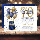 Cette fabuleuse fête du 70e anniversaire pour hommes Sauvez la carte Date avec un gâteau bleu marine et or 2 couches avec ballons bleu marine et or, le numéro 70 en or et confetti bleu brillant serait parfait pour demander aux gens de mettre cette date spéciale de côté pour la prochaine fête du 70e anniversaire. Traditionnel et classique, il est frais, moderne et contemporain. L'arrière est une feuille bleu marine de coordination.