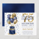 Cette fabuleuse fête du 75e anniversaire pour hommes Save the Date avec un gâteau bleu marine et or 2 couches avec ballons bleu marine et or, le numéro 75 en or et confetti bleu brillant serait parfait pour demander aux gens de mettre cette date spéciale de côté pour la prochaine fête du 75e anniversaire. Traditionnel et classique, il est frais, moderne et contemporain. L'arrière est une feuille bleu marine de coordination.