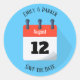 Fett rot und weiß reißen vom Kalenderdatum auf blauem Hintergrund für Save the Date. Monat und Tag können bearbeitet werden. Namen sind nur Beispiele.