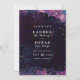 Enregistrez les cartes datées avec des traits abstraits de peinture à l'aquarelle violet, bleu et noir avec des points d'or et du texte simple et moderne. Ce chic et unique et sombre à l'exception des dates sont parfaits pour les mariages de musée d'art moderne et de galeries d'art !