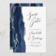 Save The Date Agate Navy Blue Silver Modern Script Mariage