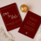Mit dieser eleganten Bordeaux- und Goldfolie rette-the-date-Karte verkünden Sie Ihr Hochzeitstag. Passen Sie Text auf der Vorder- und Rückseite mit all Ihren Hochzeitsdetails an.