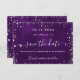 Une carte Save the Date glamour pour une fête d'anniversaire de 50e (ou tout âge). Un arrière - plan violet de couleur inégale. Décoré avec des étincelles de parties scintillant en faux argent. Le texte : Save the Date est écrit avec un grand script de style à la main tendance.
