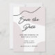 Ces cartes de mariage modernes minimalistes pour annoncer la date de réservation présentent un design aquarelle beige neutre chic sur fond blanc, avec une ligne noire courbe abstraite pour un style supplémentaire. Le dos de la carte est un noir riche qui met en valeur la subtilité du beige. Un script manuscrit moderne et dans l'air du temps complète ce look élégant.