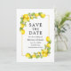 Aquarelle moderne citrons et verdure cadre or Enregistrer la date Faire-part Fiançailles - Retour Jaune