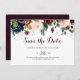 Cette aquarelle illustrée chute mariage horizontal sauf la date est parfait pour un mariage moderne. Le design est composé d'une aquarelle artistique peinte à la main bleu marine, bordeaux, rouge, roses roux et pivoines avec d'élégants feuilles verts, inspirant la beauté idyllique colorée de l'automne.