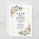 Elégant Aquarelle rose Blush Roses et Fleurs blanches Enregistrer La Carte Faire-part Mariage date inclut une verdure botanique sur un cadre doré.