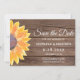Famille d'Invitations et amis à Save The Date pour votre fête mariage avec cette carte de tournesol rustique. Il est décoré d'un tournesol couleur aquarelle dans les tons jaunes sur un arrière - plan en bois d'écorce marron avec une typographie stylisée. Facilement personnalisable avec vos détails. Aquarelle originale © Michele Davies.