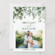 Aquarelle moderne Elégante Botanique Verdure Fiançailles Mariage Enregistrer La Carte Date comprend des feuilles de lierre, de fougères et de sauge. Photo Couple. Arrière - plan vert.