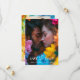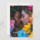 Présentez la carte "Ethereal Bloom", où les touches personnelles époustouflantes rencontrent l'élégance artistique. Le recto de la carte présente une photo pleine page du couple, capturant un moment chéri en détails vibrants. En bas, la légende "Save the Date" est élégamment affichée, suivie des noms du couple et de la date de la cérémonie, en s'assurant que toutes les informations essentielles sont claires et joliment intégrées dans la conception. Au fond, une deuxième photo du couple est présentée, sur fond de l'oeuvre enchanteresse "Fleur Ethérée", qui tournoie avec grâce dans de riches teintes de bleus, de violets, de rouges, d'oranges et de verts. Sous la photo, il y a suffisamment d'espace pour un texte personnalisé, permettant des détails supplémentaires ou un message sincère. L’oeuvre améliore subtilement l’arrière - plan, créant un cadre cohésif et élégant qui complète les images du couple. Découvrez le charme de la carte "Ethereal Bloom", où des photos personnelles et des artistes vibrants se réunissent pour donner un ton mémorable à votre fête mariage.