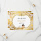 Belle petite fille dans sa robe de baptême et collier de croix d'or dormant sur un coussin d'or. L'Arrière - plan est l'or avec le travail de défilement argenté et l'embellissement croisé. Le dos est orné de ruban satiné blanc et de croix.
