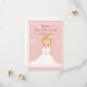 Save the Date Karte für die Taufe eines Mädchens. Das Design ist ein illustriertes Baby auf einem rosa Hintergrund, bei dem die Gänseblümchen um das Baby herum schweben. Dank Creative Fabrica und dem Hungryjpeg für einige der Elemente im Design. Größere Sicht auf das Baby.