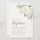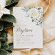 Invitations de baptême avec des fleurs blanches d'hiver et des feuilles de rêve.