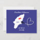 Une invitation amusante à sauver la date pour les couples qui se marient sur l'île grecque de Rhodes avec une carte en silhouette et un avion et un cœur tourbillonnant. Si facile à personnaliser avec vos détails personnels sans frais supplémentaires.