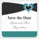 Save the Date Black Sash Aquamarin Bow Quadratischer Aufkleber