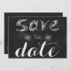 Eine "Save the Date" Karte auf schwarzer Brett-Hintergrund für die Leute, die ein wenig Rand und ein wenig Nostalgie kombiniert. Einfach und bis zum Punkt. Ideal auch für den Lehrer, der den Knoten bindet.
