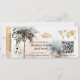Destination Beach Wedding Boarding Pass Ticket Gold Flugzeug Save the Date mit Kreuzfahrtschiff Icon mit tropischen Blätter. QR-Code hinzufügen