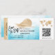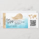 Destination Beach Wedding Boarding Pass Ticket Gold Flugzeug Save the Date mit Kreuzfahrtschiff Icon mit tropischen Blätter. QR-Code hinzufügen