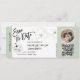 Destination Beach Wedding Boarding Pass Ticket Gold Flugzeug Save the Date mit Herz und Flugzeug Ikone mit einfachen minimalistischen Linien Kunst-Weltkarte und sage grün Hintergrund Farbe. QR-Code hinzufügen