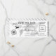 Boarding Pass Hochzeit speichern Sie das Datum Ticket Einladung mit einer eleganten Silber-Folie Destination Weltkarte, Kompass, Flugzeug und eine personalisierte Textvorlage.