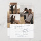 Ce boho chic ardoise bleu multi photo code QR enregistrer la carte date est parfait pour un mariage minimaliste. Le design bohème moderne, bleu et blanc pâle et poussiéreux, se compose d'une calligraphie rustique simple au style unique mais classique. Personnalisez votre enregistrement de la date avec vos noms, date du mariage, emplacement, 4 photos de fiançailles et un code QR qui renvoie à votre site Web mariage.
