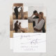Ce boho chic violet violet multi photo QR code enregistrer la carte date est parfait pour un mariage minimaliste. Le lavande clair violet blanc design bohème moderne dispose de calligraphie rustique simple avec un style unique mais classique. Personnalisez votre enregistrement de la date avec vos noms, date du mariage, emplacement, 4 photos de fiançailles et un code QR qui renvoie à votre site Web mariage.
