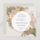 Cette invitation a une aquarelle d'inspiration bohémienne avec herbe de pampas, orchidées, feuilles de palmiers et fleurs de protéa et un cadre en or simulé autour du cercle. L'arrière - plan derrière le cercle peut être modifié ou supprimé si vous voulez du blanc. La copie est modifiable et la police peut être modifiée. La carte a un arrière - plan coloré, un peu plus sombre que l'avant. Vous pouvez modifier la couleur arrière.