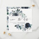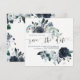 Ce mariage branché et élégant, à l'exception de la carte datant, présente des fleurs de pivoine bleu marine boho avec des feuilles luxuriants, des baies et des plumes. L'avant de l'invitation est orné d'une calligraphie moderne et élégante, avec vos noms, votre date et vos informations mariages ; l'arrière est entouré d'un cadre fleuri.