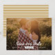 Cette photo rustique Save the Date a "Save Our Date" écrit dans un script de calligaphie de brosse moderne. Sous elle une petite bannière met en valeur votre date mariage avec une touche de fantaisie. Des rayures dorées et blanches à l'arrière apportent une touche moderne. Personnalisez ce design en ajoutant vos noms et informations et en remplaçant la photo par la vôtre. Vous pouvez également repositionner les éléments en haut ou en bas de l'image en cliquant sur "customiser" et en les déplaçant. Ce design classique est signé Kitty Pie Press.